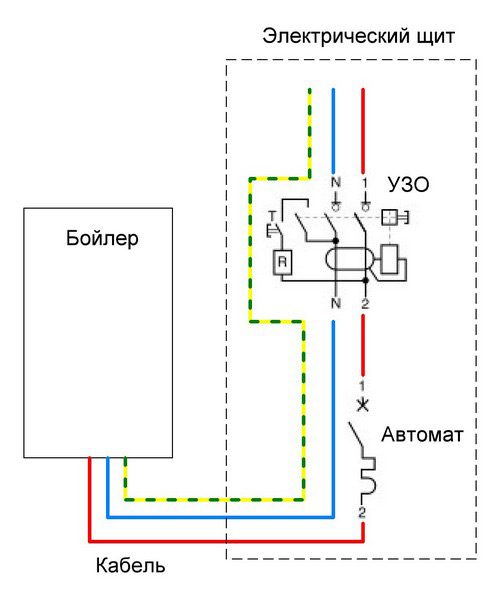 Un circuito adatto alla maggior parte degli scaldabagni prodotti è mostrato nella figura seguente: