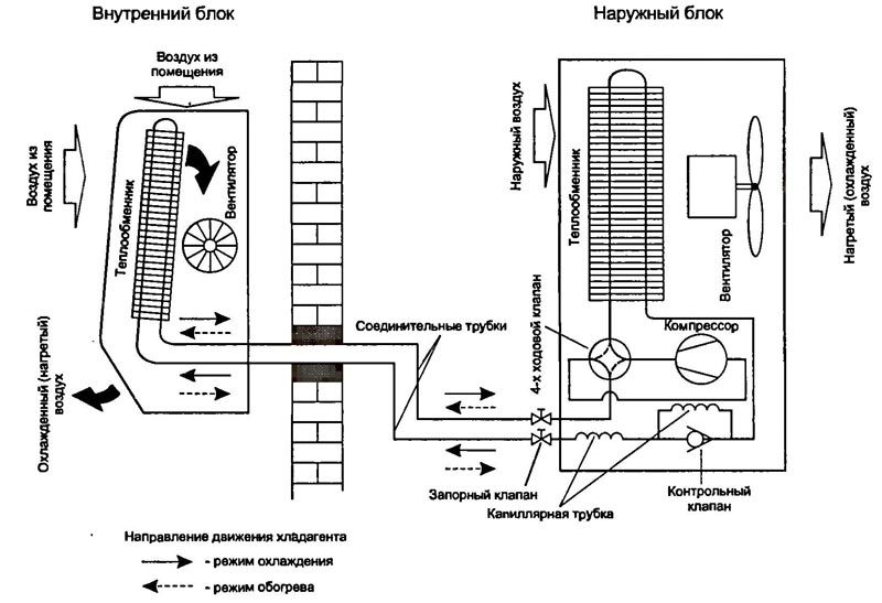 I circuiti di refrigerazione delle unità interna ed esterna sono combinati con le comunicazioni freon. Pertanto, viene creato un circuito chiuso del sistema ventilato.