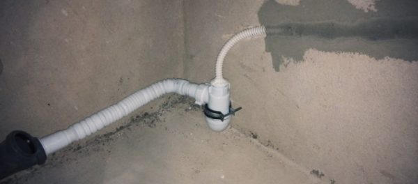 - Per evitare che il cattivo odore degli scarichi penetri nella stanza, è necessario installare un blocco dell'acqua - questa è la parte curva del tubo di drenaggio nella forma della lettera S. Il funzionamento di un tale otturatore è simile al lavoro di un sifone - crea una barriera agli odori che provengono dal basso.