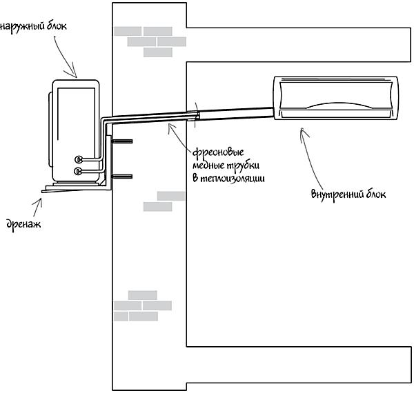 - Quindi, raccogliere e trattenere installazione del condizionatore d'aria a posto. Ma è importante che il tubo passi attraverso il foro sul lato del condizionatore d'aria.