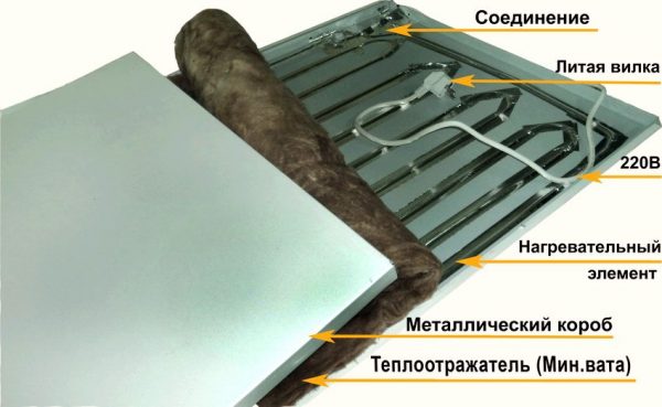 I componenti principali del design sono uno schermo termoriflettente e riscaldatori in ceramica. Sono combinati in un design monolitico, quindi sono spesso chiamati pannelli riscaldanti in ceramica.Dalle manifestazioni dell'ambiente esterno e dai danni meccanici, i componenti interni del dispositivo sono protetti da un involucro interamente in metallo.