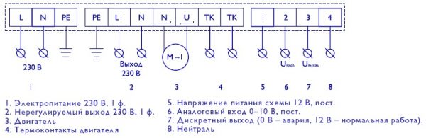 - Regolatore di velocità in frequenza. Questi modelli possono essere utilizzati esclusivamente nell'intervallo da 0 a 480 volt. Adatto per motori trifase con potenza non superiore a 75.000 watt.