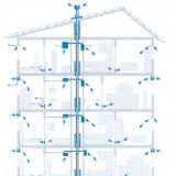 Responsabile della modalità di funzionamento selezionata è la "centralina", che imposta la modalità di funzionamento delle pompe di scarico. Questi dispositivi possono servire una o più sale. Il numero di tali dispositivi dipende dall'area della stanza. Un cappa aspirante dalla cucina si unisce anche qui.