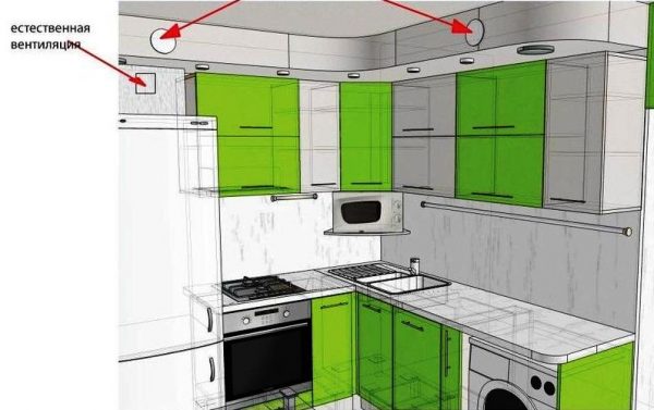 Grazie alla ventilazione della cucina di scarico, è possibile condurre uno scambio d'aria nelle aree più problematiche della stanza. Ad esempio, per migliorare la qualità dell'aria in cucina al momento della cottura. Non solo il benessere generale delle persone che vivono qui dipende dall'uso di tali strutture, ma anche dalle condizioni delle pareti del soggiorno. Standard tecnici raccomandati per l'organizzazione della ventilazione: