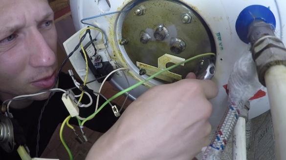 - Rimuovere i fili, dopo averli precedentemente contrassegnati con un pennarello. Il filo è attaccato ai terminali del sensore con viti.Va ricordato che prima di iniziare i lavori, lo scaldabagno deve essere scollegato dalla rete.