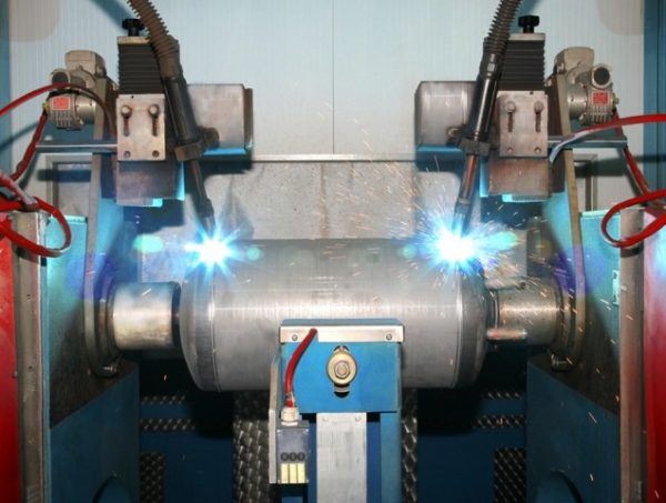La saldatura al plasma viene utilizzata nella fabbricazione di un serbatoio per uno scaldabagno