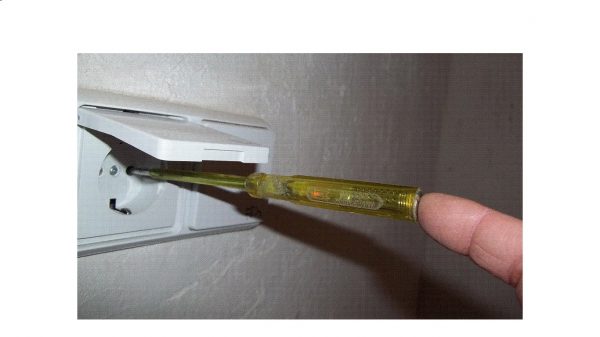 - È inoltre possibile controllare la presa utilizzando un cacciavite indicatore. Inserire un cacciavite nel primo e poi nel secondo foro nella presa. Dove si trova la fase, il LED di segnale sul cacciavite si accenderà. A contatto con zero, il cacciavite non brucerà.