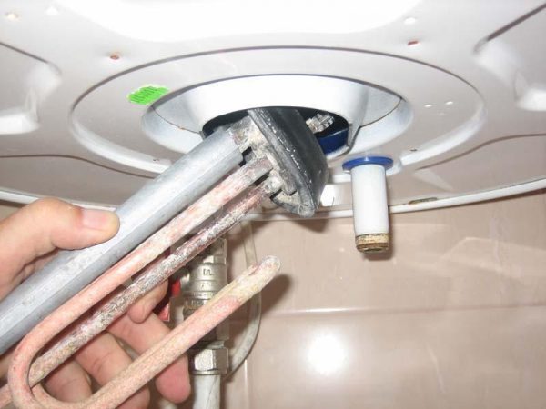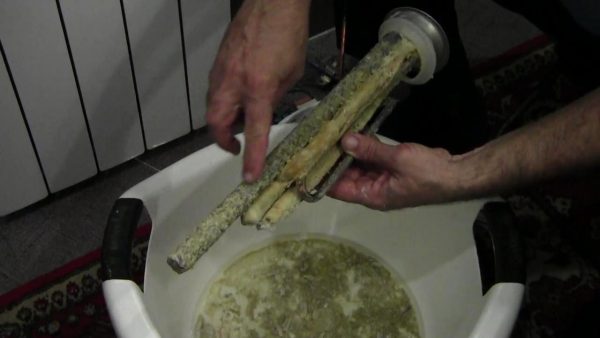 Per eliminare il riscaldatore dalla bilancia, è necessario rimuoverlo dallo scaldabagno (descritto sopra) e inserirlo in un bagno di plastica con un liquido con elementi chimici attivi. Ad esempio, è possibile utilizzare lo strumento domestico "Mole", funziona in modo molto efficace quando è necessario eliminare la scala o la ruggine.