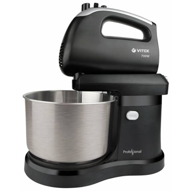 Il dispositivo di una marca affidabile di plastica resistente. La ciotola è realizzata in acciaio inossidabile e gli ugelli sono realizzati in alluminio di alta qualità. La potenza di questo mixer a 6 velocità è di 800 watt con un volume della vasca di 4 litri, che è sufficiente per una famiglia di 4 persone. Inoltre sono inclusi nel dispositivo 3 ugelli diversi. I primi 2 sono per impastare e montare, e l'ultimo è un ugello a spatola. Il peso del gadget è leggermente superiore a 7 kg e la lunghezza del cavo raggiunge i 1,6 m.