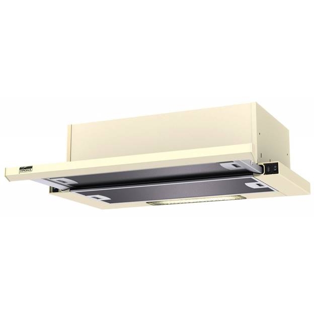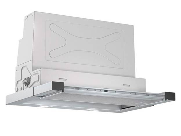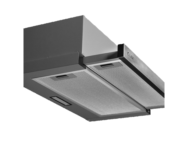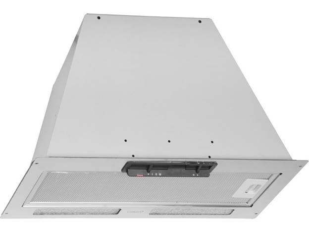 Cappa da incasso con motore da 110 W. Sia la parte principale del corpo che i bordi sono realizzati in metallo resistente a graffi e danni esterni. Il controllo meccanico è fornito tramite pulsanti che possono facilmente accendere una delle tre modalità di aspirazione o accendere la lampadina integrata. Il filtro antigrasso protegge in modo affidabile i componenti interni dalla contaminazione e viene facilmente rimosso per la pulizia.