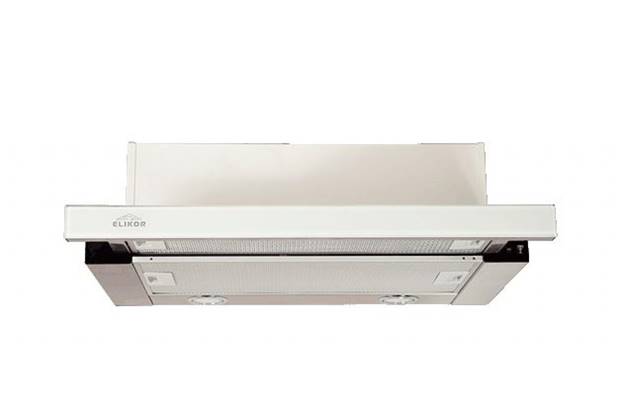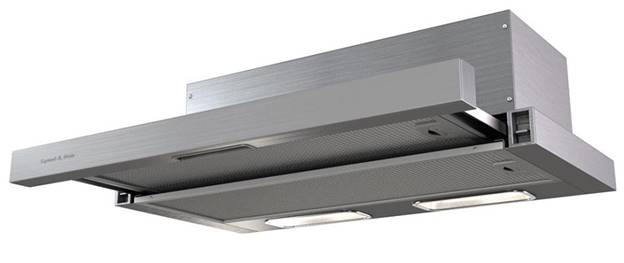 Un'unità produttiva che può essere integrata direttamente nell'armadio della cucina. Adatto per le più grandi stufe e piani cottura, in quanto copre un'area molto impressionante. È logico installarlo in grandi cucine per non ingombrare lo spazio. Per l'illuminazione sono installate due lampade a incandescenza da 20 W ciascuna, che, se necessario, possono essere sostituite con lampade a risparmio energetico. Tale soluzione farà risparmiare energia elettrica.