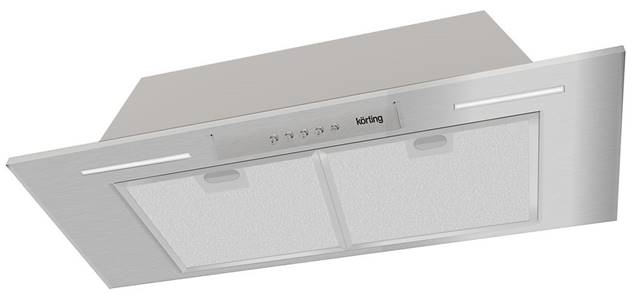 La valutazione di grandi cappe incorporate per la cucina è completata da un apparato impressionante con una capacità di 1000 metri cubi. m / h alla massima velocità del motore. Viene fornito un comodo controllo touch, con il quale è possibile cambiare facilmente modalità. Inoltre, è possibile acquistare un filtro a carbone, che non è incluso nel kit di base.