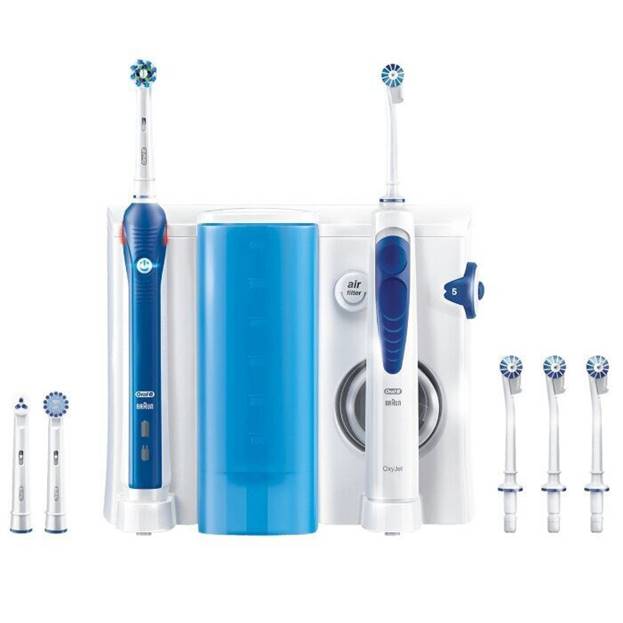 La valutazione degli irrigatori fissi è aperta da un dispositivo dotato di tutte le funzionalità necessarie. Qui è installato un serbatoio con una capacità di 600 ml, che consente molto raramente di rabboccare l'acqua. Esistono molte modalità sia per lo spazzolino standard che per l'applicazione di un flusso di acqua alle gengive. 8 ugelli multifunzione sono realizzati con materiali affidabili e sono assolutamente sicuri da usare.