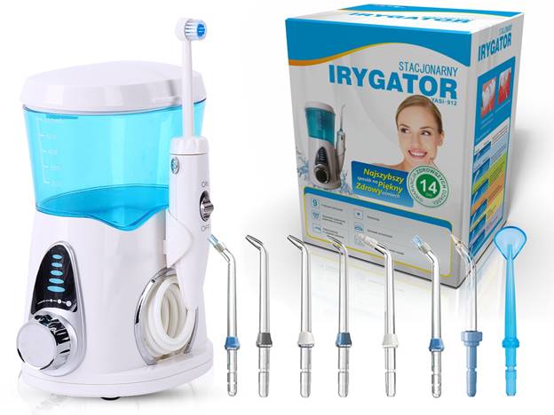 Irrigatore fisso, in grado di rafforzare i denti nel più breve tempo possibile. Anche le gengive sanguinanti passeranno dopo le prime settimane di utilizzo del dispositivo. L'irrigatore rimuove efficacemente i detriti alimentari anche in luoghi difficili da raggiungere. Buono per i sistemi di pulizia delle staffe. Può essere utilizzato anche da persone con impianti e una varietà di protesi.