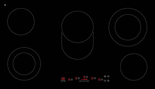 Grande piano cottura composto da 5 fuochi. Uno di questi ha una forma ovale ed è adatto per il riscaldamento di grandi contenitori di forma non standard. Le dimensioni del modello sono piuttosto impressionanti, quindi prima di acquistarlo è necessario determinare la sua posizione in cucina. Il pannello di controllo touch si trova nella parte anteriore, che consente di monitorare costantemente il funzionamento di ciascuna zona di riscaldamento.