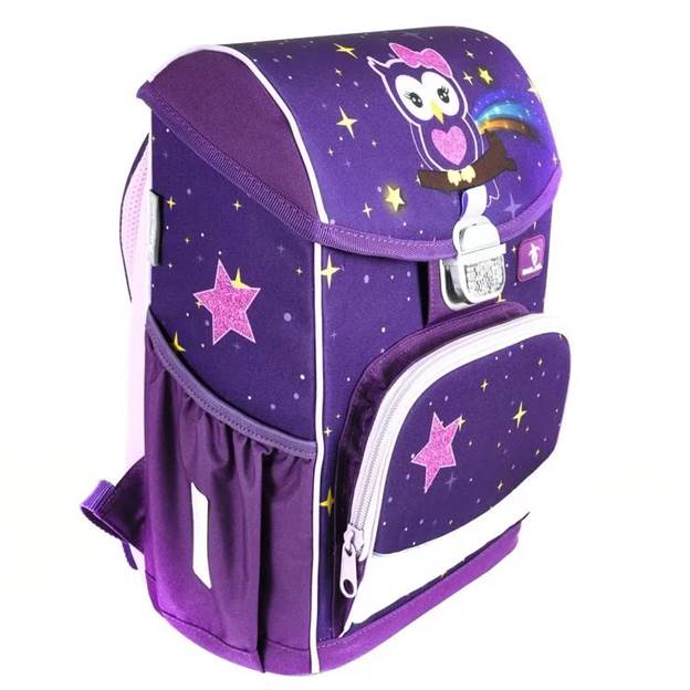 La struttura rigida, la forma stabile di una cartella è adatta a bambini fino a 10 anni. I colori scuri con motivi luminosi piaceranno alla ragazza.