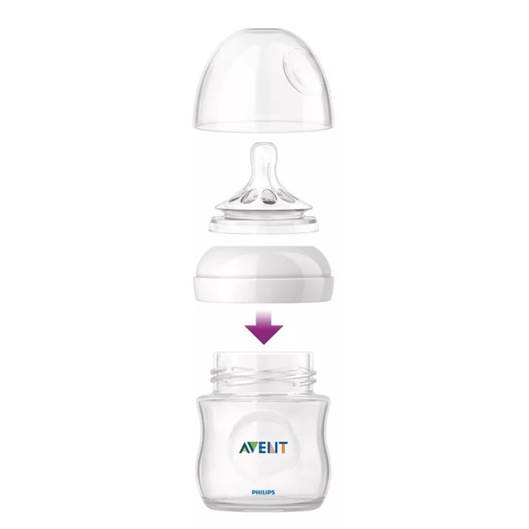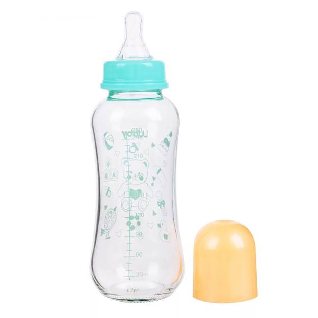 Una bottiglia di vetro di forma anticolica non contiene sostanze tossiche e nocive. È conveniente lavare, bollire, grazie all'ampio collo. Resistente alle sollecitazioni meccaniche. Capezzolo in silicone, forma anatomica. Ha un coperchio che copre il capezzolo.