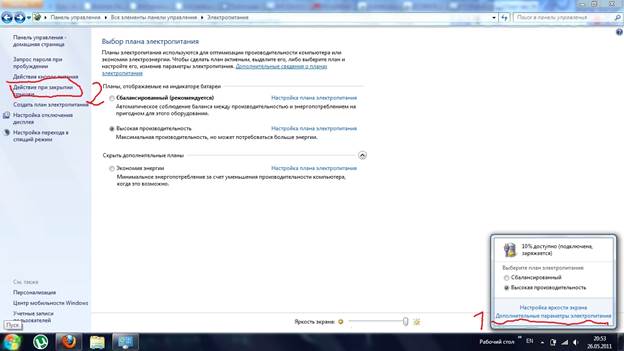 Ardından aşağıdakileri yapmanız gerekir: sistem ve güvenlik sekmesi> güç kaynağına gidin ve ekrandan sorumlu olan kaydırıcıyı bulun. Kaydırıcının konumuna bağlı olarak, ekran parlaklığı da değişecektir.