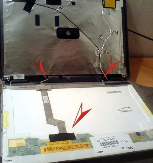 Bu da yardımcı olmadı mı? Belki de nedeni, dizüstü bilgisayar matrisinin bileşenlerinden birinin bozulmasıdır. Diğer bir yaygın neden, zayıf döngü temasıdır. Genellikle dizüstü bilgisayarın uzun mesafelere taşınması sırasında, kablo fiziksel darbelerden teması keser. Ardından bağlantısını kontrol etmek için arka kapağı açmanız gerekir.