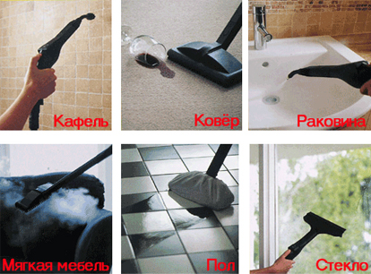 Üreticiler işlevli cihazlar sunar buharlı temizleyici ve elektrikli süpürge. Bu cihazları kullanırken buhar işleminden sonra kir toplanmasına gerek yoktur.