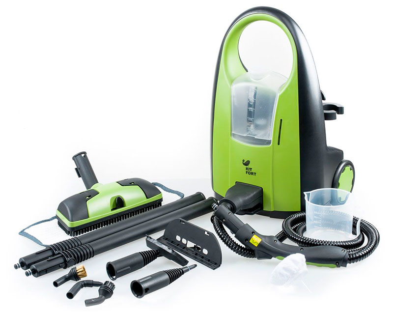 - Kitfort KT-903. Cihaz, 60 dakikaya kadar kesintisiz kesintisiz çalışma için tasarlanmıştır. Birçok aksesuara sahip güvenilir ve çok yönlü zemin tipi buharlı temizleyici dahildir. Verimli temizlik, döşemeli mobilya ve oyuncakların temizlenmesi, pencere ve kapıların yıkanması için kullanılabilir. Eksi - su için küçük bir tank ve cihazın iyi bir ağırlığı.