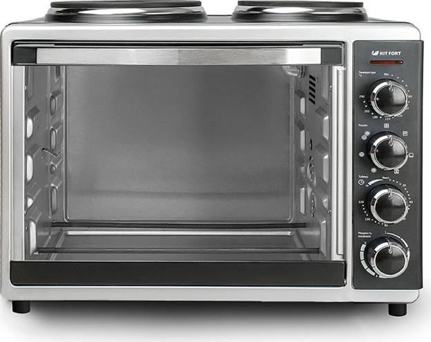 Bir dizi farklı yemek hazırlamak için kullanılabilecek 34 litre hacimli kullanışlı mini fırın. Cihazın içinde istenen sıcaklığı koruyabilen ve ürünleri eşit şekilde pişirebilen yerleşik bir termostat vardır. 1200 W gücünde, cihaz maksimum 320 derecelik bir sıcaklık sağlayabilir. Bu gösterge, herhangi bir karmaşıklıkta gerçek mutfak başyapıtları yaratmak için yeterlidir.