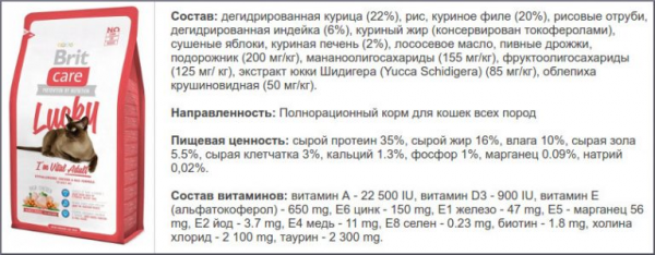 İngiliz markasının balık içeriği yüksek bir cetveli var. Yumurta ve iki tür yağa ek olarak, bu sınıf için standart - somon ve tavuk, yem maya, kızılcık, prebiyotiklerle zenginleştirilmiştir.