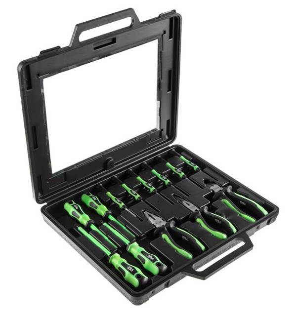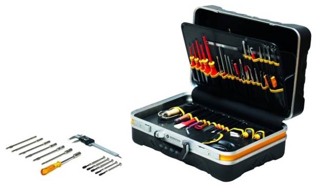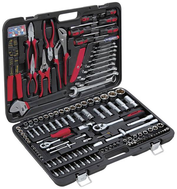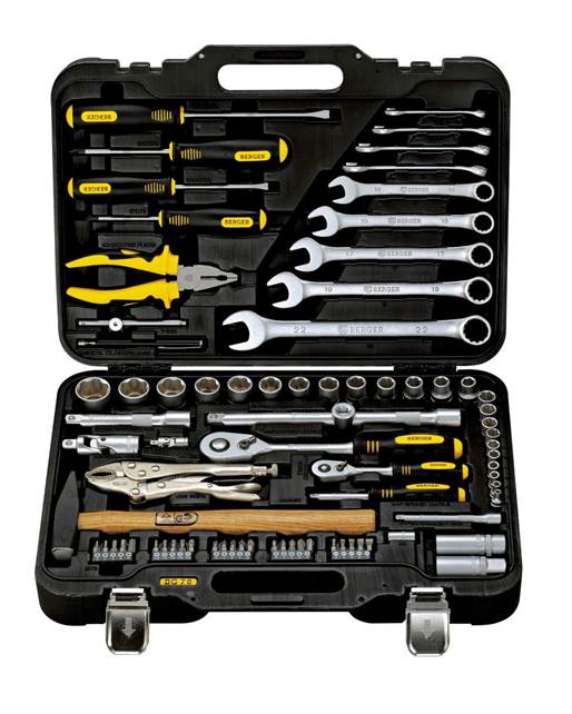 | 6 | Berger Frankfurt BG151-1214 | 13744 | Birçok ürün - 151 adet, şunları içerir: her tipten 2 düz tornavida (düz ve çapraz şekilli), 29 bit, 49 soket başlığı, 16 anahtar, ayrıca 150 mm yuvarlak burun pensesi ve 180 mm pense | Kit çok büyük ve 12,5 kg ağırlığında |