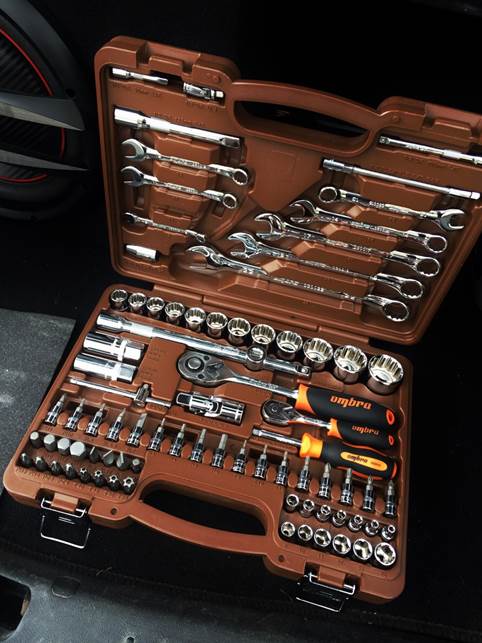 | Kuzmich NIK-002/60 | 3020 | İhtiyacınız olan her şey var - ½ ve ¼ üzerinde evrensel bir bağlantı, ½ ve ¼ üzerinde kilitler, T şeklinde bir anahtar, 33 soket başlığı, 12 anahtar, altıgen anahtarlar | |