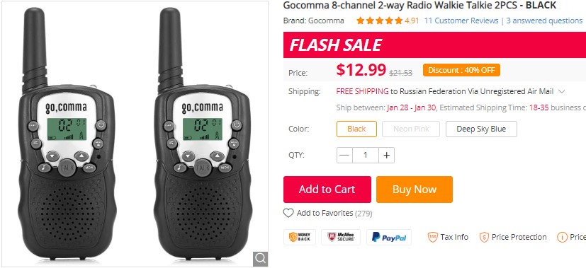 | Gocomma 8-kanal 2-yollu Radyo Walkie Talkie 2 ADET | 1200 | Basit pillerle çalışan düşük fiyat, bu cihazları basit manipülasyonlar için piyasadaki en popüler modellerden biri haline getirdi. | |