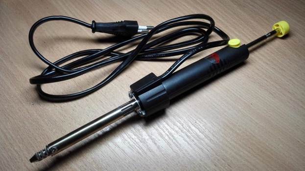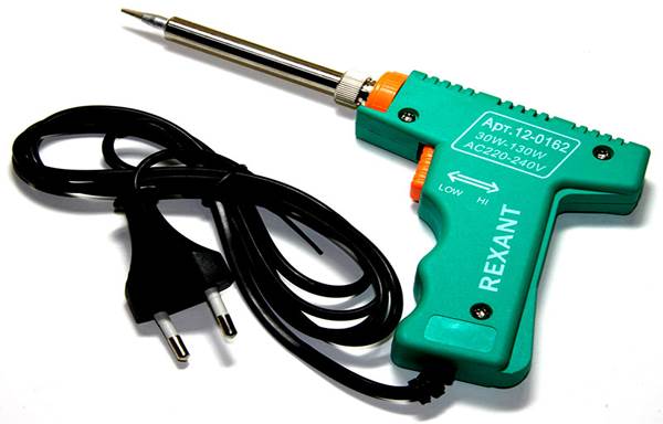 Şeklinde, lehimleme sırasında düğmeyi basılı tutma ihtiyacıyla açıklanan bir silahı andırır.